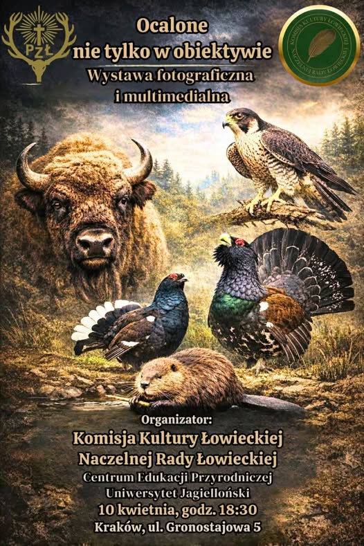 Zarząd Okręgowy serdecznie zaprasza do udziału w wystawie fotograficznej i multimedialnej: „Ocalone nie tylko w obiektywie” i przesyłania zdjęć utrwalających obraz naszej przyrody. Zdjęcia powinny przedstawiać przede wszystkim piękno fauny, zwracać uwagę na rolę myśliwych w ochronie i zachowaniu dziedzictwa przyrodniczego oraz prawidłową gospodarkę łowiecką (nie mogą być to zdjęcia z polowań). Najładniejsze zdjęcie weźmie udział w wystawie 10 kwietnia 2026 w Centrum Edukacji Przyrodniczej Uniwersytetu Jagiellońskiego w Krakowie. Organizatorem jest Komisja Kultury Łowieckiej Naczelnej Rady Łowieckiej oraz Centrum Edukacji Przyrodniczej Uniwersytetu Jagiellońskiego. Wystawę będzie można zobaczyć w Krakowie przy ulicy Gronostajowej 5 od 10 kwietnia.
